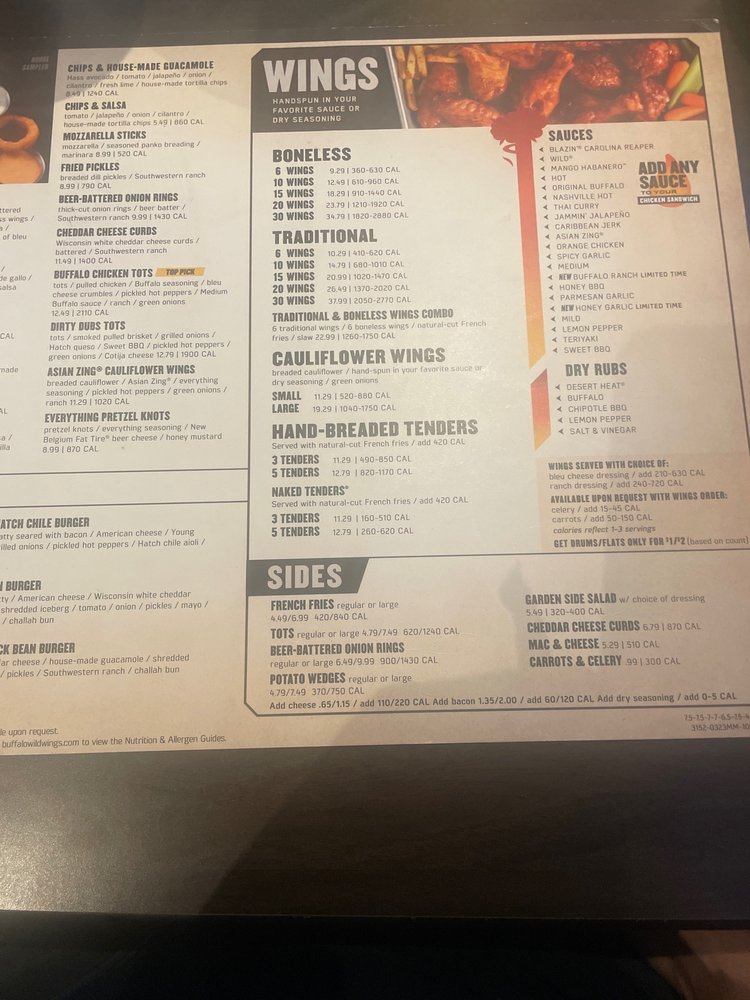 Buffalo Wild Wings Southgate Menu (Update 2025)